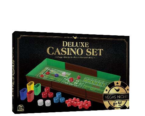 Run a Casino night in the comfort of your own home. Play Poker & Blackjack or extend the box to create your very own Craps table. Contains 3 playable card games and 6 different dice games including Craps.Specifications