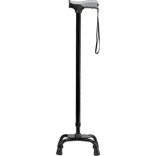 The Soft Grip Quad Cane was made with innovative technology and designed to provide you with maximum comfort. Ideal for those who are independent enough to use one-hand walking aids but still need the four point stability that quad canes provide. This quad cane has a lower center of gravity for increased stability and balance. Item Length: 6.13Item Height: 28.5Item Width: 8. The Small Base Quad Cane - Bronze is ideal for people who are independent enough to use a one-hand walking aid yet want the stability of four floor contact points. This cane features a cushioned handle for added comfort, an attractive bronze finish and a small base for increased maneuverability.Specifications