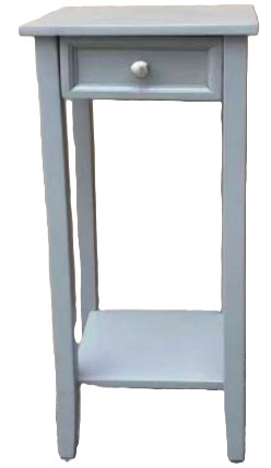 Acacia Wood Plant Table w Drawer and Bottom Shelf; Solid Acacia Legs and Drawer Front; Gray Finish w Brushed Nickel Pulls; Wood Drawer Glide; Size: 12"W x 12"D x 28"HSpecifications