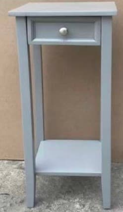 Acacia Wood Plant Table w Drawer and Bottom Shelf; Gray Finish w Brushed Nickel Pulls; Size: 12"W x 12"D x 28"H; Solid Acacia Legs and Drawer Front; Wood Drawer Glide