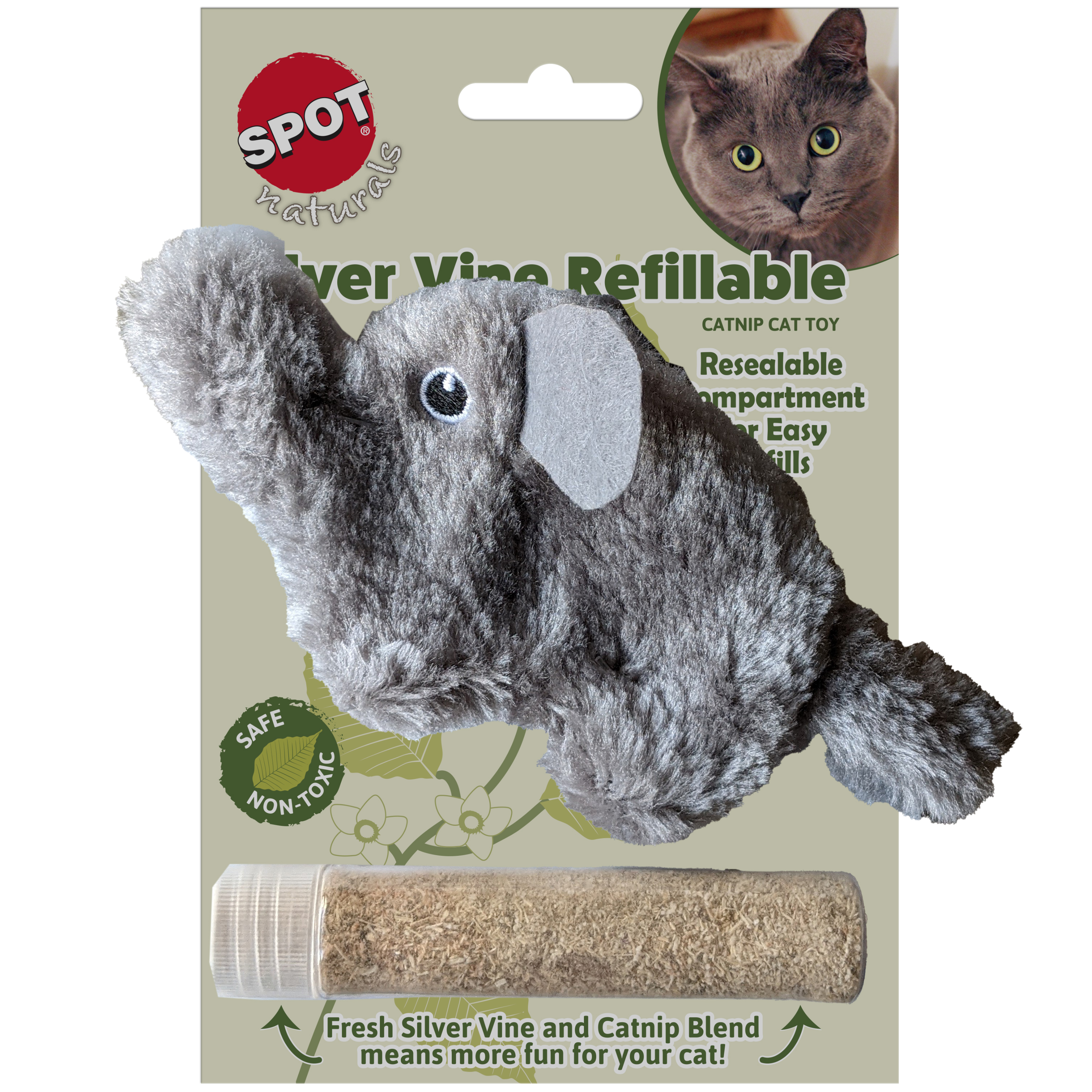 Available in three cute colors that will be picked at random for an exciting surpirse - will you get the elephant, lion or tiger?Silver vine is a natural material cats are intensely attracted to. Refillable toys feature an opening to insert fresh silver vine.Specifications