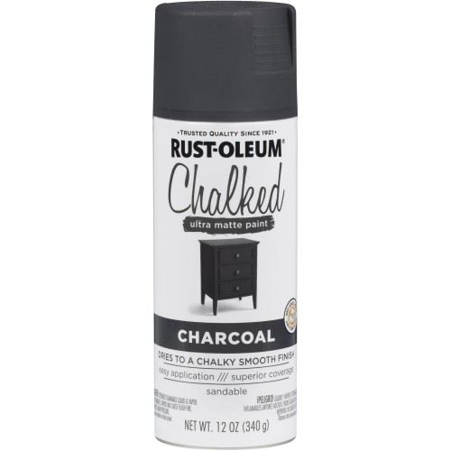 Give your DIY renovation and building projects a beautiful matte finish with Rust-Oleum Chalked Spray Paint. This product is specially formulated to apply seamlessly to almost any type of surface to make it easy for you to change colors or touch up paint jobs without having to use a traditional brush. Made for superior coverage and durability, this ultra-matte spray paint is useful for projects both large and small. Feel confident in completing your most ambitious home refurbishing tasks with this sandable, distressable paint, and make your furniture truly unique. This charcoal spray paint is suited for a variety of surfaces including plastic, wood, ceramic and more. It allows you to spray from any angleeven upside down. Once applied, you only have to wait 20 minutes to see it dry. Rust-Oleum Chalked Spray Paint, 12 oz Aerosol Can:.Specifications