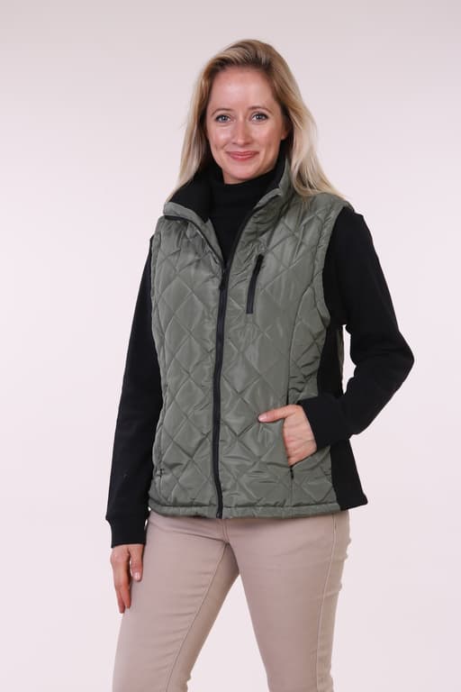 WOMEN'S 100% WATER RESISTANT QUILTED POLYESTER ZIPPER FRONT VEST WITH POLY FILLED POLY LINING AND RIB KNIT UNDER ARM SIDE TRIM IN CONTRAST COLOR. COLORS AVAILABLE: BLACK W/BLACK TRIM AND BURGUNDY W/BLACK TRIM. SIZE RUN M-2XL. MACHINE WASH/DRY. IMPORTED.Specifications
