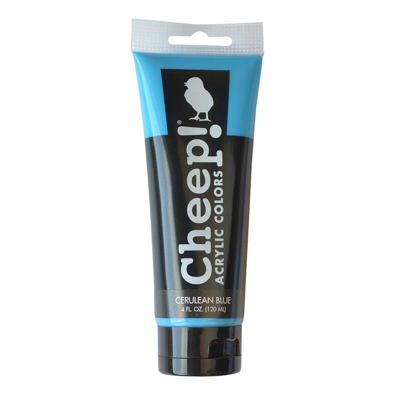 Cheep! Acrylic Paint is an economical line of paint that doesn’t compromise on quality. Bright colors with a creamy, soft body consistency that can be used on a variety of surfaces: paper, wood, fabric, and metal. Non-toxic, cleans up with soap and water. 4oz Tube Cerulean Blue- Flip top cap combines securely sealed lid with easy dispensing.Specifications