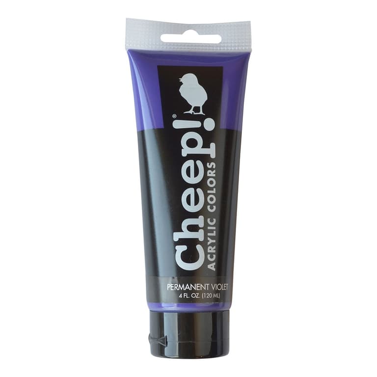 Cheep! Acrylic Paint is an economical line of paint that doesn’t compromise on quality. Bright colors with a creamy, soft body consistency that can be used on a variety of surfaces: paper, wood, fabric, and metal. Non-toxic, cleans up with soap and water. 4oz Tube Permanent Violet- Flip top cap combines securely sealed lid with easy dispensing.Specifications
