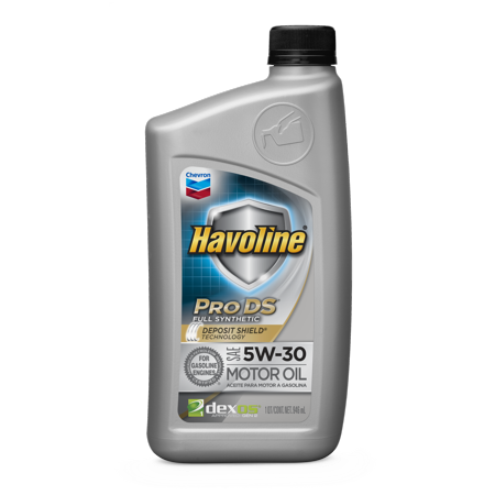 Havoline ProDS Full Synthetic Motor Oils with Deposit Shield Technology are specially engineered for the highest level of protection demanded by high-performance engines. They exhibit outstanding thermal and shear stability to control viscosity and continue to provide top performance and protection even during extended oil drain intervals. They provide an extra measure of protection for your investment in a sport utility vehicle SUV high performance or luxury cars. Havoline ProDS Full Synthetic Motor Oils with Deposit Shield Technology give advanced protection to high output supercharged and turbocharged performance vehicles. Havoline ProDS Full Synthetic Motor Oils with Deposit Shield Technology are formulated using 100% synthetic base stocks for top performance. The exceptional volatility and stability of synthetic base stocks promotes low oil consumption fast engine starting especially in cold weather and extremely fast lubrication of all moving parts. In addition a special blend of additives protects the engine against harmful deposits and wear. SAE 5W-30 is licensed under the dexos1 specification License no. D10216GL089. It is recommended for Acura Chrysler FCA Ford GM Honda Mazda Nissan and Toyota engines calling for this grade. It provides exceptional performance in extreme cold temperatures.Specifications