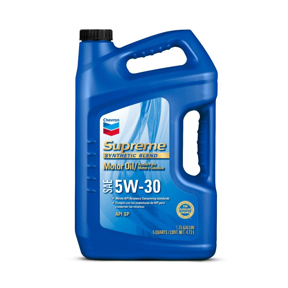 A high level of dispersancy in Chevron Supreme Motor Oils protects against deposit and sludge formation in stop-and-go driving sustained high temperature operation and protects against corrosion; All grades are formulated with high quality base stocks and robust additive packages including shear-stable viscosity index improvers detergents dispersants anti-wear agents corrosion inhibitors antio; Chevron Supreme Motor Oils are premium quality automotive engine oils; It provides excellent cold weather performance and carries the API Resource Conserving designation; SAE 5W-30 is recommended by the majority of auto manufacturers for their late model North American vehicles under a wider variety of weather conditions; Their anti-wear additives provide excellent wear protection of critical engine parts; Their excellent high temperature oxidation stability helps prevent viscosity increase and oil gelling in the crankcase; They help keep PCV systems clean to maintain smooth engine performance
