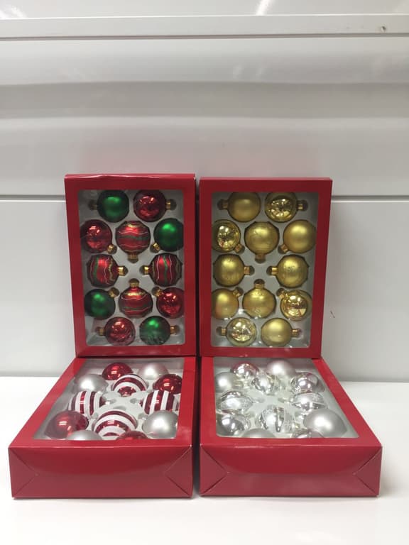 Glass Ornaments Assorted Colors; MADE OF GLASS AND METAL HOOKS