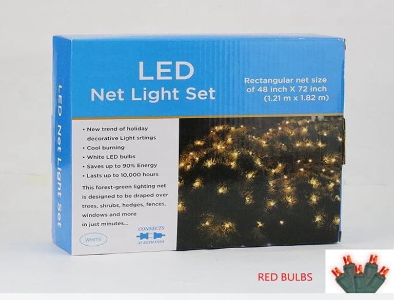 4'x6' Net Lights, with 100 LED Red Bulbs, and 24" lead wireSpecifications