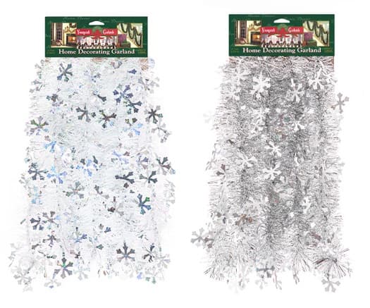 Garland w/Die Cuts; Holographic Silver Snowflakes w/Silver Snowblush Center