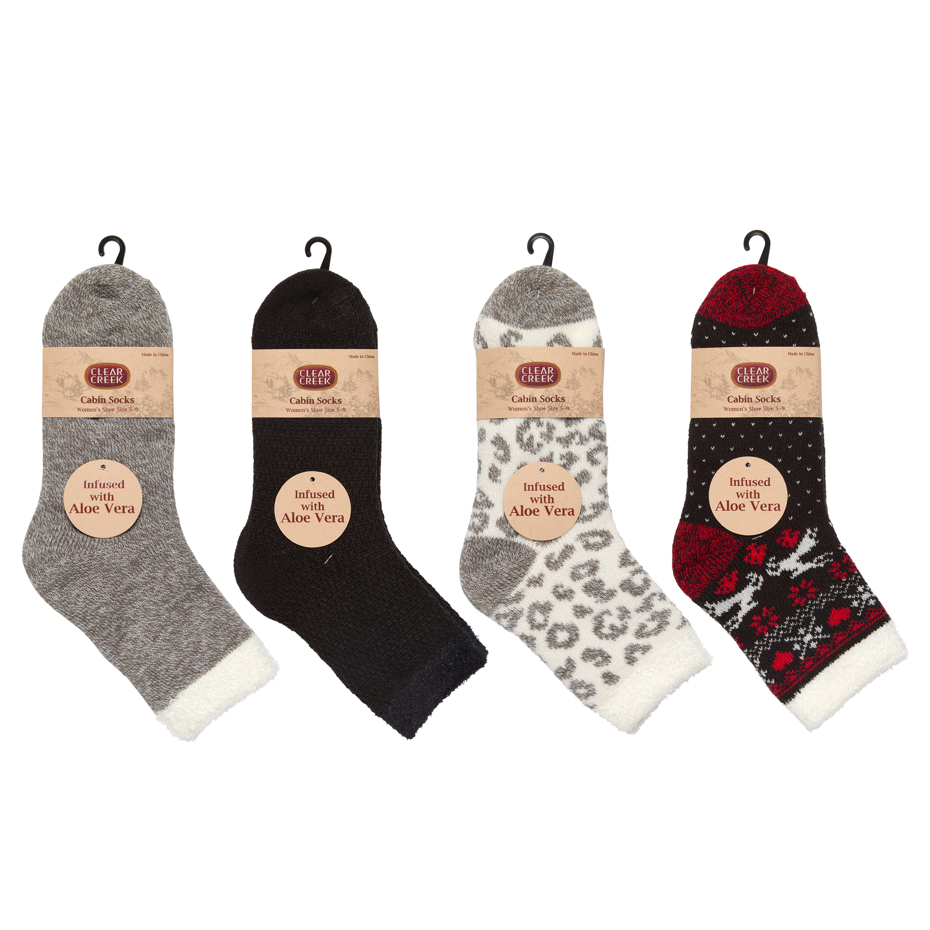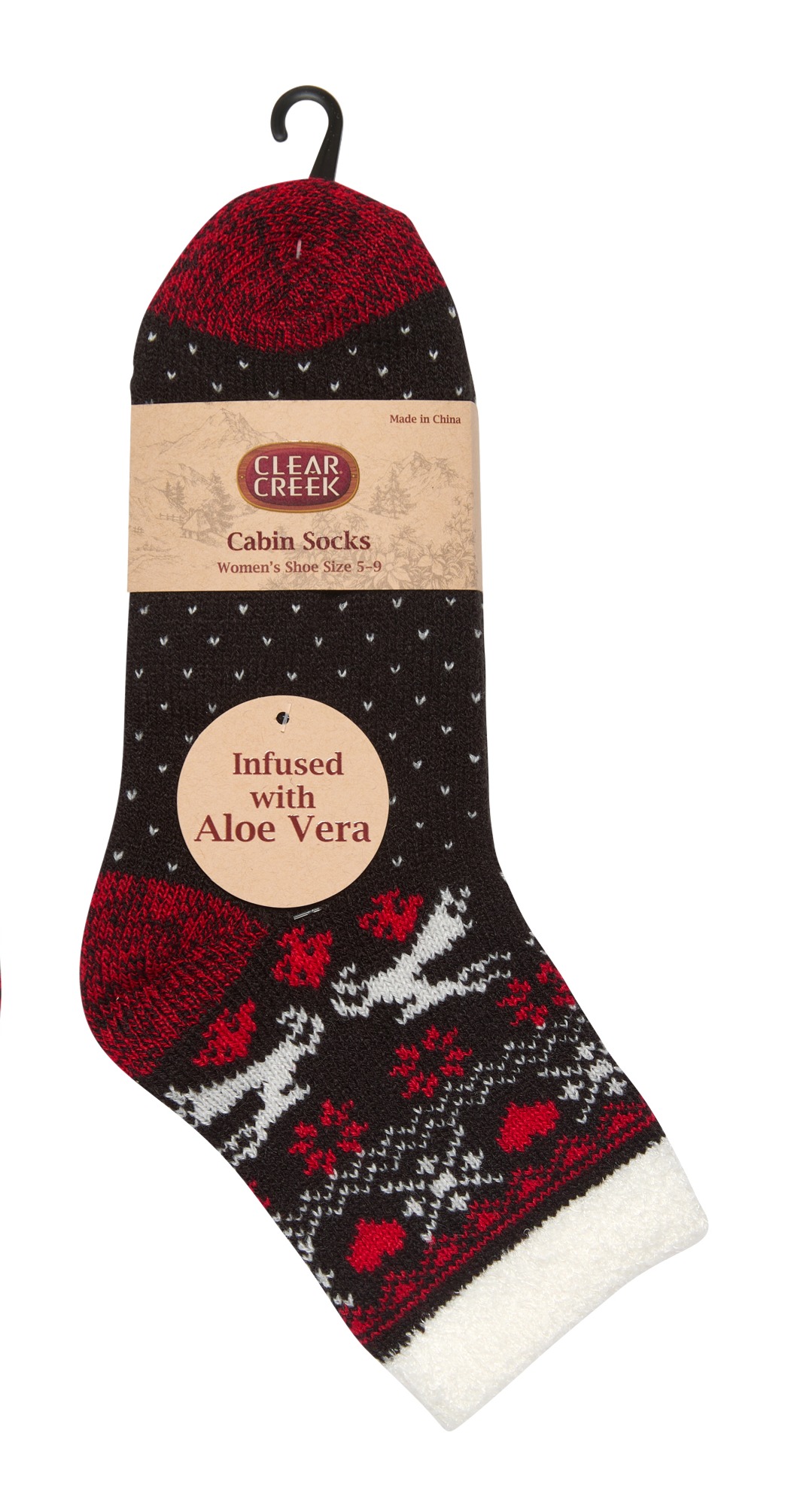 TREAT YOUR FEET TO CLEAR CREEK WOMENS LINED SOCKS INFUSED WITH NATURALLY SOOTHING ALOE VERA. THESE SUPER-SOFT SOCKS CONTINUALLY MOISTURIZE WHILE SURROUNDING YOUR FEET IN PLUSH COMFORT.Specifications