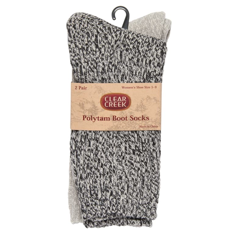 CLEAR CREEK WOMENS BOOT CREW SOCKS ARE A MARLED SOLID POLYTAM SOCK THAT COMES WITH 2 PAIRS.Specifications