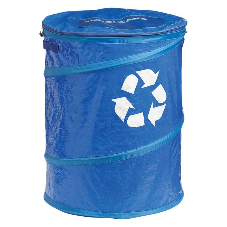 Coghlan's Pop-Up Recycle Bin is lightweight and handy to have around the campsite, RV or motor home. When you reach your destination, the spring steel container pops up and holds its shape. When you're finished using it, simply push it down flat for easy storage. Fully zippered top keeps contents secure. Made of heavy-duty polyethylene. Imported.Specifications