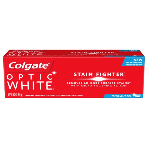 Colgate optic white stain fighter teeth whitening toothpaste removes 6X more surface stains with micro-polishing action. It contains clinically proven technology to safely remove surface stains and also help prevent new stains from forming so your teeth stay whiter longer. This whitening toothpaste is good for daily use enamel safe and the fluoride toothpaste formula provides protection against cavities. It has a clean mint flavor in paste form to help freshen your breath. Vs. ordinary non whitening toothpaste after 2 weeks of continued use.Specifications