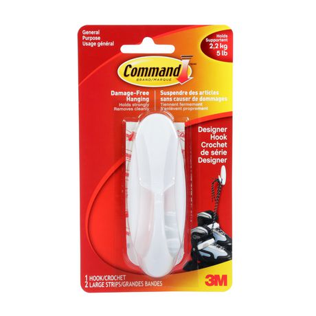 Command Hooks let you hang what you want where you want without the hassle of tools and nails; Command Strips hold strongly on a variety of smooth finished surfaces and these adhesive hooks remove cleanly with no sticky residue or damage left behind; Life is easier when everything has its place; Organize your home damage-free with Command Designer Hooks