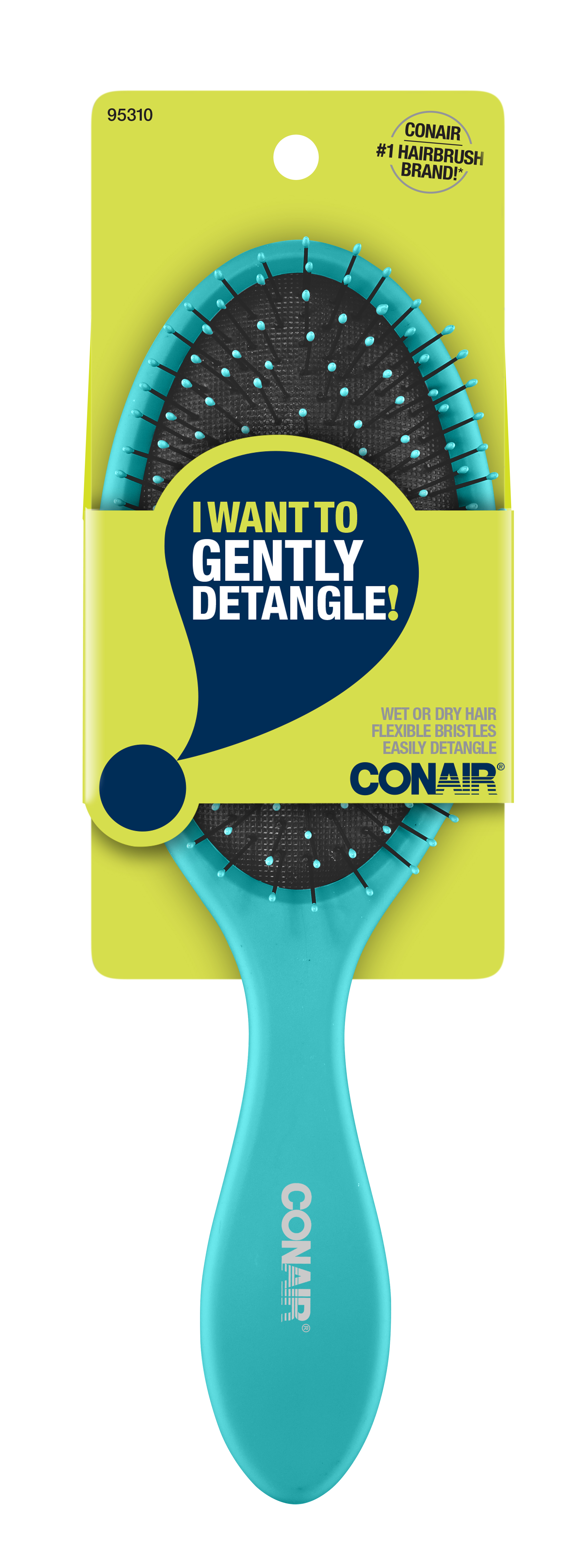 Ball-tipped bristles easily glide through hair without pulling or snagging; Flexible cushion base for stress-free brushing; Great for use on childrens hair. No more battles over brushing!; Ideal for use on all hair types - straight coarse curly or thick; Soft flexible bristles gently detangle wet or dry hair