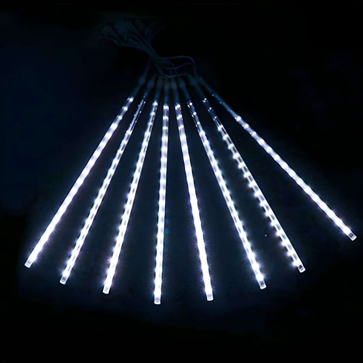 COOL WHITE METEOR LIGHTS WITH 8 STRIPS. FULL LENGTH IS 11.67 FT; LIGHTED LENGTH IS 21.5 FT.Specifications