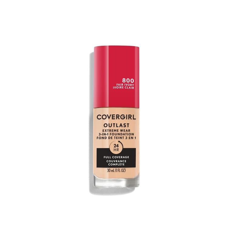 3-in-1 face makeup is a primer, concealer, and foundation all-in-one for a naturally flawless finish; Covergirl Outlast Extreme Wear 3-in-1 Full Coverage Liquid Foundation blends seamlessly, doesn’t cake, covers imperfections, and evens out skin tone; This lightweight, breathable foundation contains SPF 18 sunscreen and is transfer-, humidity-, and sweat-proof