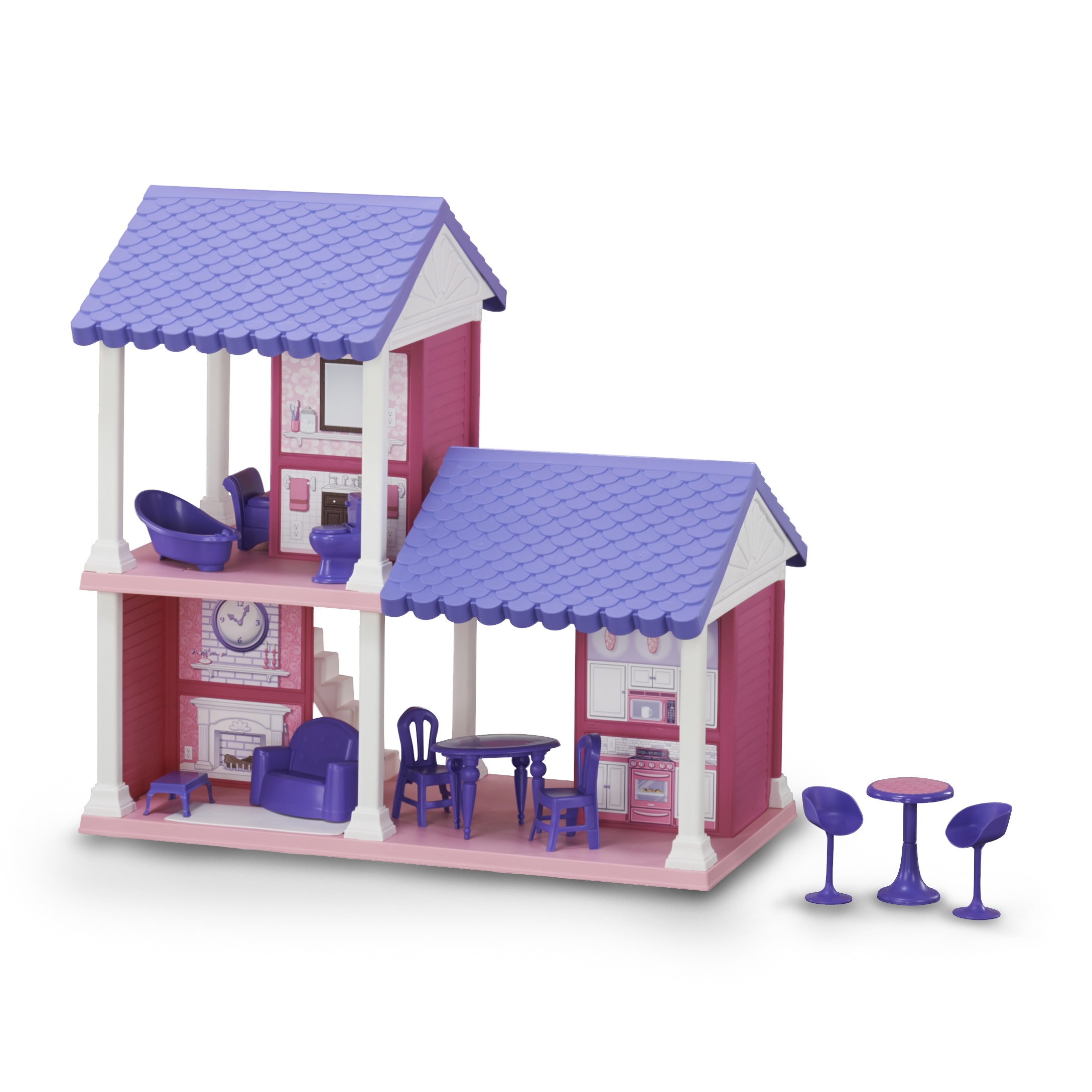 Every doll needs a home and this cozy cottage is a beautiful place for them to live! This two-story home has an open-air design, allowing for play from all sides. 13 household items add to the fun and give kids a place to make a home for their dolls. Crafted from strong and durable plastic, this house has beautiful pink and purple accents.Specifications