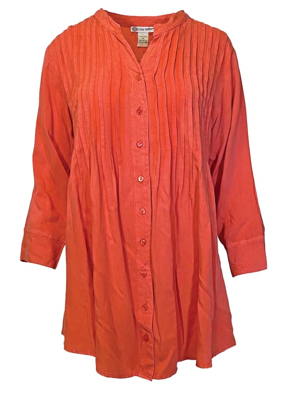 THE PERFECT SHIRT WHETHER FOR THE OFFICE, DATE NIGHT OR TO PAIR WITH YOUR FAVORITE JEANS, FEATURING PIN TUX PLEATING ON THE FRONT, V-NECK OPENING AND 3/4 SLEEVE LENGTHSpecifications