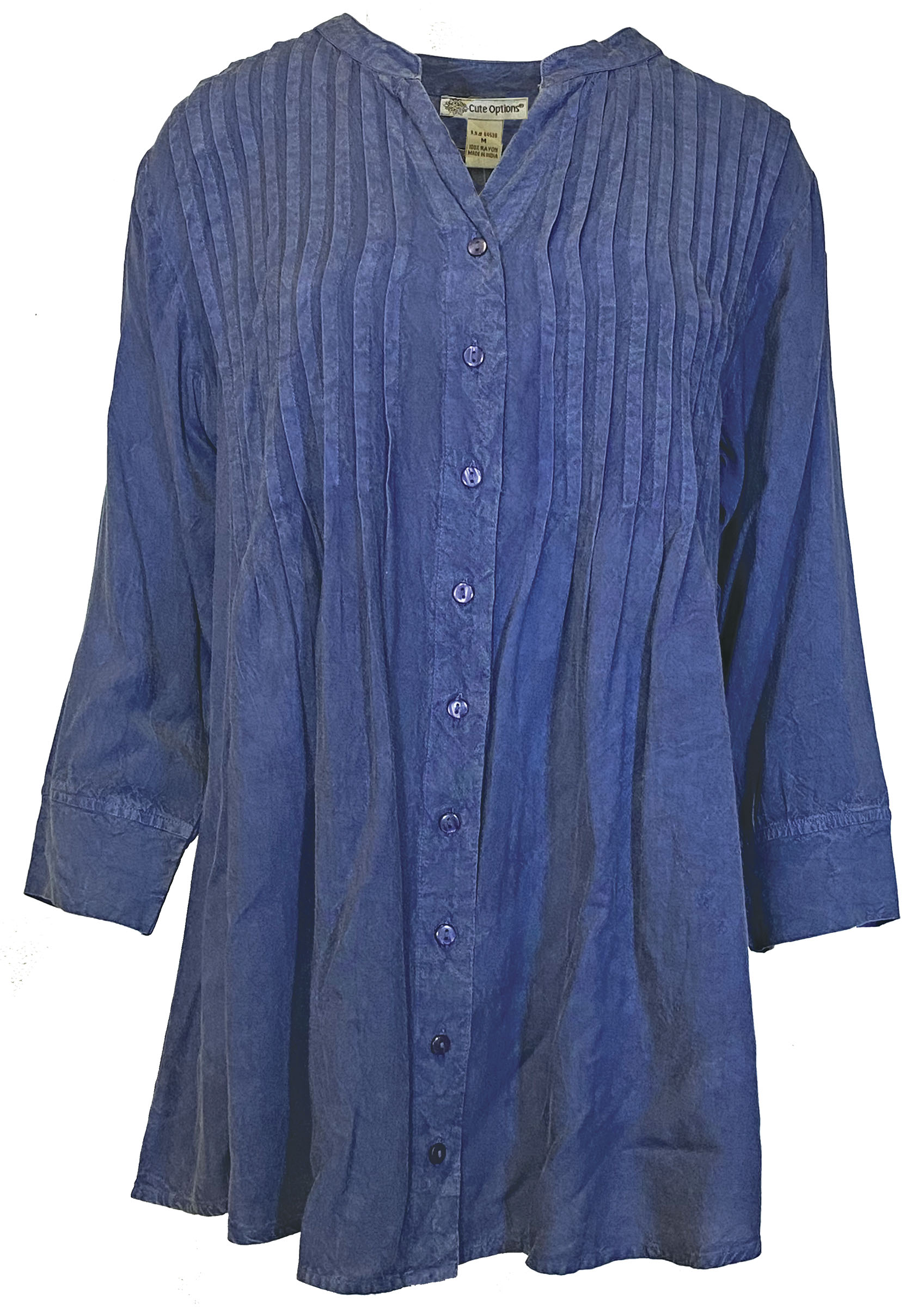 THE PERFECT SHIRT WHETHER FOR THE OFFICE, DATE NIGHT OR TO PAIR WITH YOUR FAVORITE JEANS, FEATURING PIN TUX PLEATING ON THE FRONT, V-NECK OPENING AND 3/4 SLEEVE LENGTHSpecifications