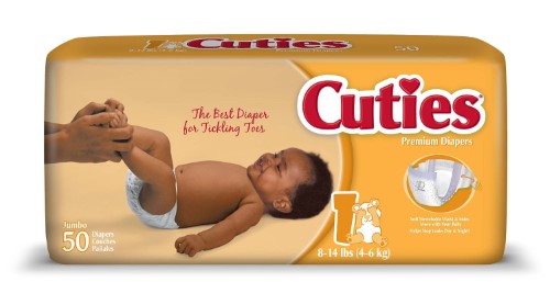 Tend to the needs of infants with these Cuties premium absorbency baby diapers. Elastic waistbands, stretch sides and inner leg cuffs offer a secure but comfortable fit, while the absorbent core provides leak protection. With a unisex design, these diape.Stretch sides move with infant and toddler activity.Size 1 diapers for 8-14 lbs. infants.Dri-Guard core prevents leaks even with active babies.Soft cloth-like outer fabric with QUICK WICK layer that keeps delicate skin dry.Specifications