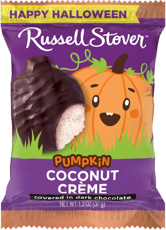 Pumpkin Novelty Coconut Creme Bar covered in Dark ChocolateSpecifications