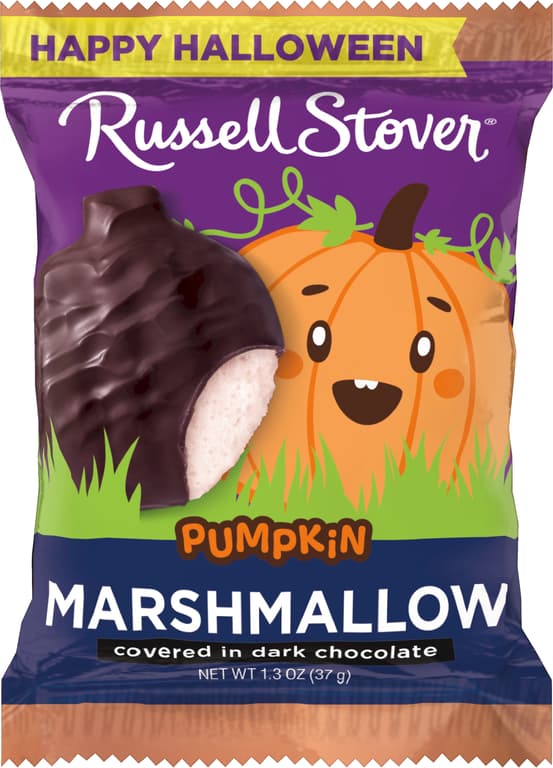 Pumpkin Shaped Novelty Marshmallow Bar covered in Dark ChocolateSpecifications