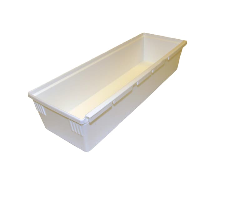 Interchangeable bins let you customize your drawer storage.; Made with sturdy white plastic for a clean addition to your kitchen office or bathroom drawers; The dimensions listed for each plastic bin are for the usable size of the compartment; These dividers are available in various sizes to let you create a customized drawer organizer
