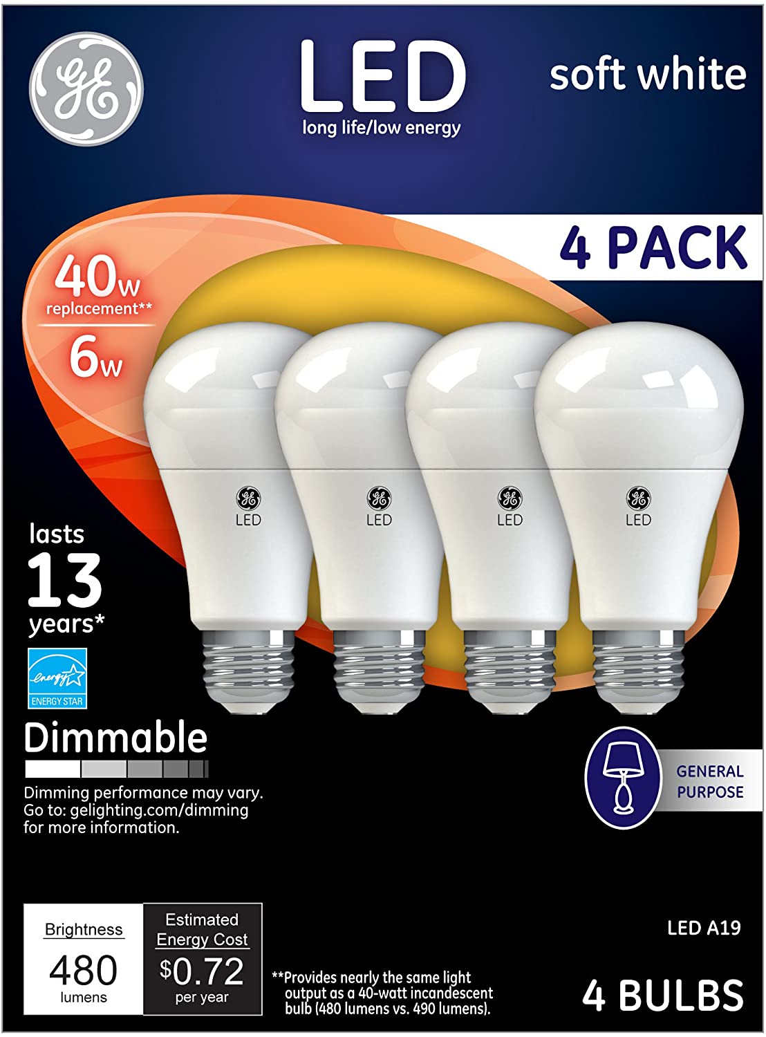 GE LEDs offer outstanding energy efficiency, long-lasting performance and just-right brightness, all in one package. They’re dimmable and illuminate your home with soft, warm light. Use this GE LED general purpose light in table lamps, sconces and open fixtures. It’s great for frequently used fixturesGE LED’s long life and low energy use will help you save money on energy.Specifications
