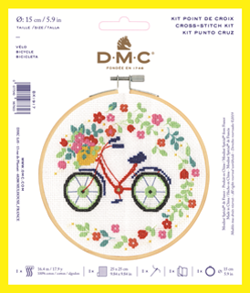 This great value kit includes genuine DMC Six-Strand Embroidery Floss, instructions, fabric, a needle, and a hoop all at an excellent price. This cross stitch kit features a bicycle with flowers pouring over the basket. It will look wonderful displayed on a wall or stitched onto a cushion cover. Use a selection of vibrant DMC threads to create the design. The included high quality aida fabric will ensure neat and precise stitches.Specifications