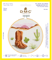 This great value kit includes genuine DMC Six-Strand Embroidery Floss, instructions, fabric, a needle, and a hoop all at an excellent price. Use this cross stitch kit to create this charming western inspired design. Stitched on light blue 14-count 5.5 pts/cm 100% cotton Aida with DMC Six-Strand Embroidery Floss stranded embroidery thread. The clearly recognisable squares make it easy to create neat, regular stitches.Specifications