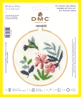 This great value kit includes genuine DMC Six-Strand Embroidery Floss, instructions, fabric, a needle, and a hoop all at an excellent price. You can almost here the wings flutter as this beautiful bird indulges in these vibrant florals. The included aida 14 count fabric will help you achieve neat and precise cross stitches. Capture the bright colors using a selection of DMC Six-Strand Embroidery Floss.Specifications