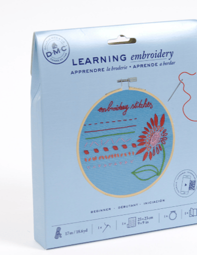 DMC's first kit for true beginners. Kit comes with DMC Embroidery Floss (2 kits), DMC Pearl Cotton (1 kit), or acrylic yarn (1 kit), 6 Embroidery Hoop (4 kits) and instructions.Specifications