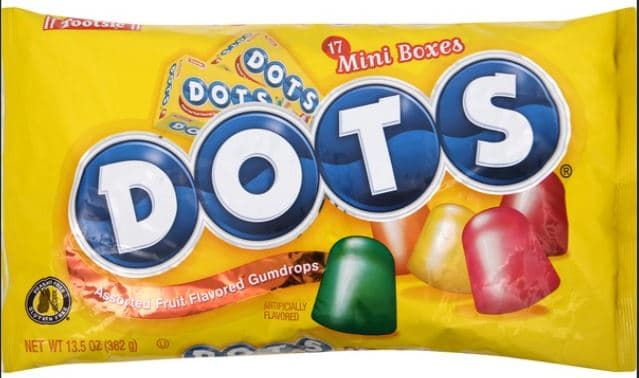 BURSTING WITH VIBRANT COLORS AND FRUITY FLAVORS THE ORIGINAL DOTS ARE A NOSTALGIC JOURNEY INTO CHILDHOOD. THESE CHEWY GUMMIES OFFER A WELL BALANCED MIX OF CHERRY STRAWBERRY LEMON LIME AND ORANGE FLAVORS SINCE 1945.Specifications