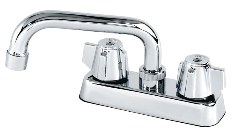 This Homewerks 4 in. 2-handle Laundry Faucet in Chrome is a great addition to any laundry room. The long-reach spout provides easy access if you need to rub out a stain or fill a bucket. The 360° swiveling capability provides full sink access so you can soak your clothes and conveniently utilize the entire sink.Specifications