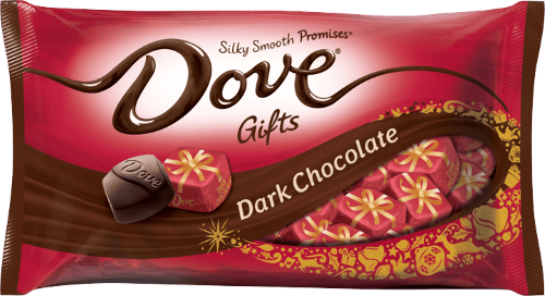 Celebrate the holidays with the luxurious taste of DOVE Dark Chocolate Gifts Holiday Candy. DOVE PROMISES Dark Chocolate Candies are individually wrapped, so they are perfect for sharing with friends or coworkers at holiday parties. And since they're made with only the finest ingredients, your friends and family can't wait to enjoy a dark chocolate holiday treat with you.Specifications