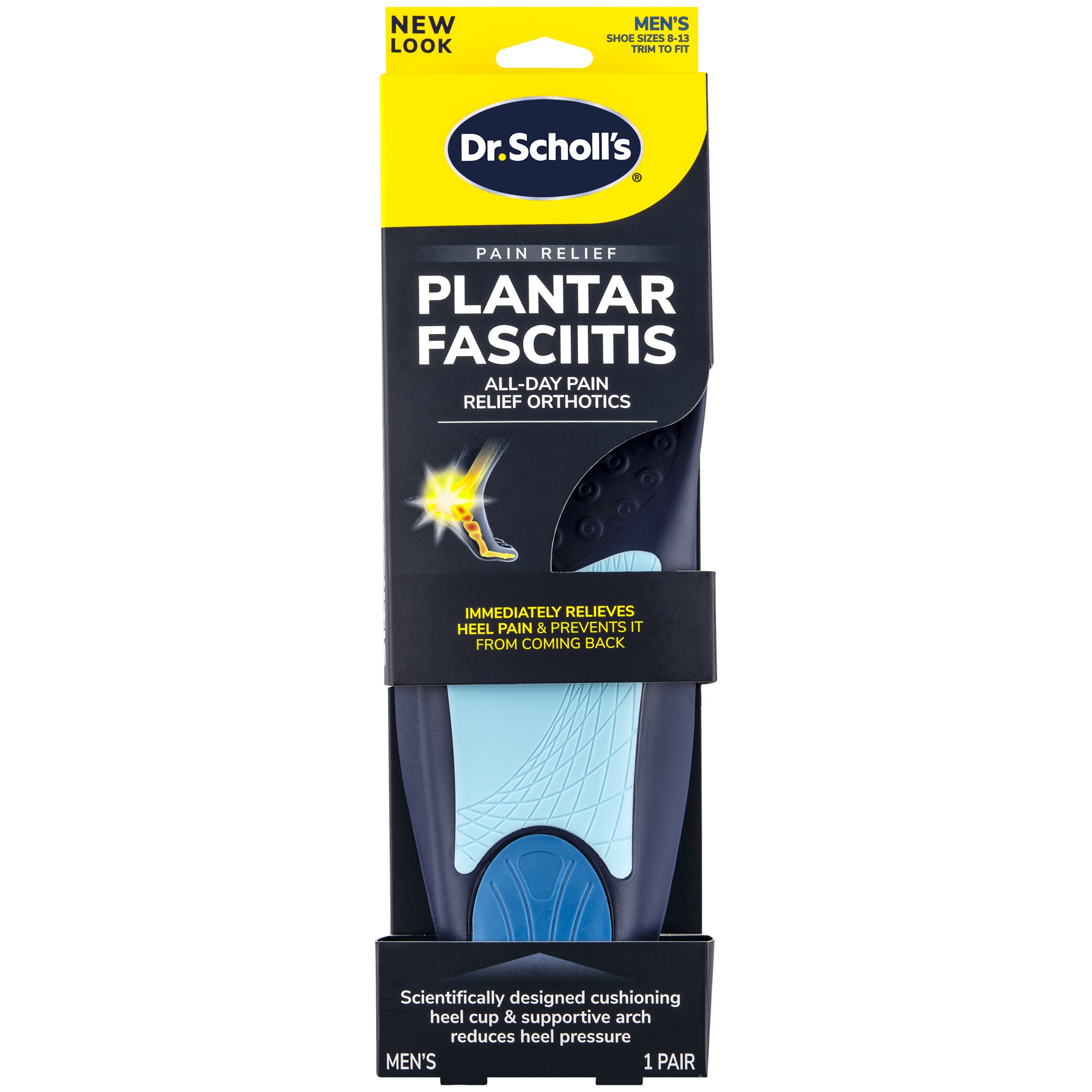 Dr. Scholl's Plantar Fasciitis All-Day Pain Relief Orthotics are specifically for people who suffer pain from plantar fasciitis pain in the heel. They are clinically proven, and scientifically designed and engineered to provide all-day pain relief from plantar fasciitis.Specifications