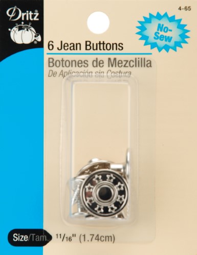 Dritz 6 Nickel Jean Buttons - 11/16. No-sew jeans buttons are attached like a snap. This package contains six 11/16in buttons. Available in a variety of finishes: each sold separately.Specifications