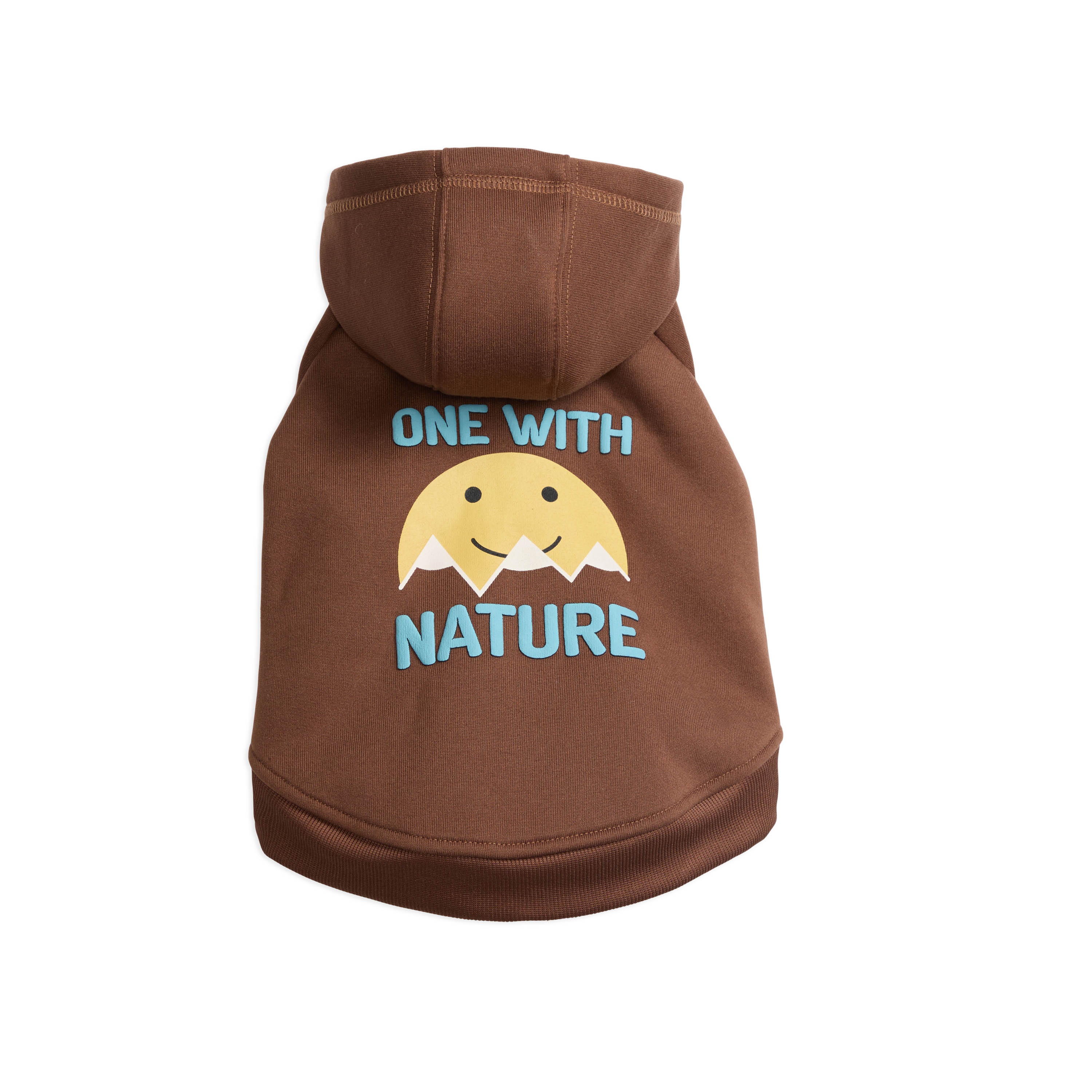 "One with Nature" print fleece hoodie; Leash Keyhole; Puff and flat prints, Rib at hem and cuffs; Snap to secure the hood; Soft and cozy inside fabric