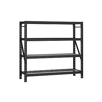 The Edsal four-shelf metal shelving unit is ideal for adding storage space to your garage, basement, workshop, and more. Its four shelves provide ample storage space and can hold an incredible 1,500 pounds each. This stationary steel rack is durable and designed for heavy-duty use. ASSEMBLY REQUIRED.Specifications