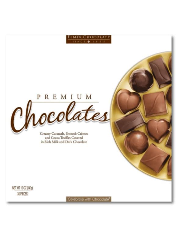 ?Indulge in the delightful variety of Elmer's Premium Assorted Chocolates. This elegant box features a selection of rich milk and dark chocolates, each filled with luscious centers such as creamy caramels, smooth cremes, and decadent cocoa truffles. Perfect for gifting or sharing, these treats are crafted with quality ingredients to deliver a satisfying chocolate experience. Whether for a special occasion or a sweet everyday indulgence, Elmer's Premium Assorted Chocolates offer a timeless taste that chocolate lovers will appreciate.Specifications