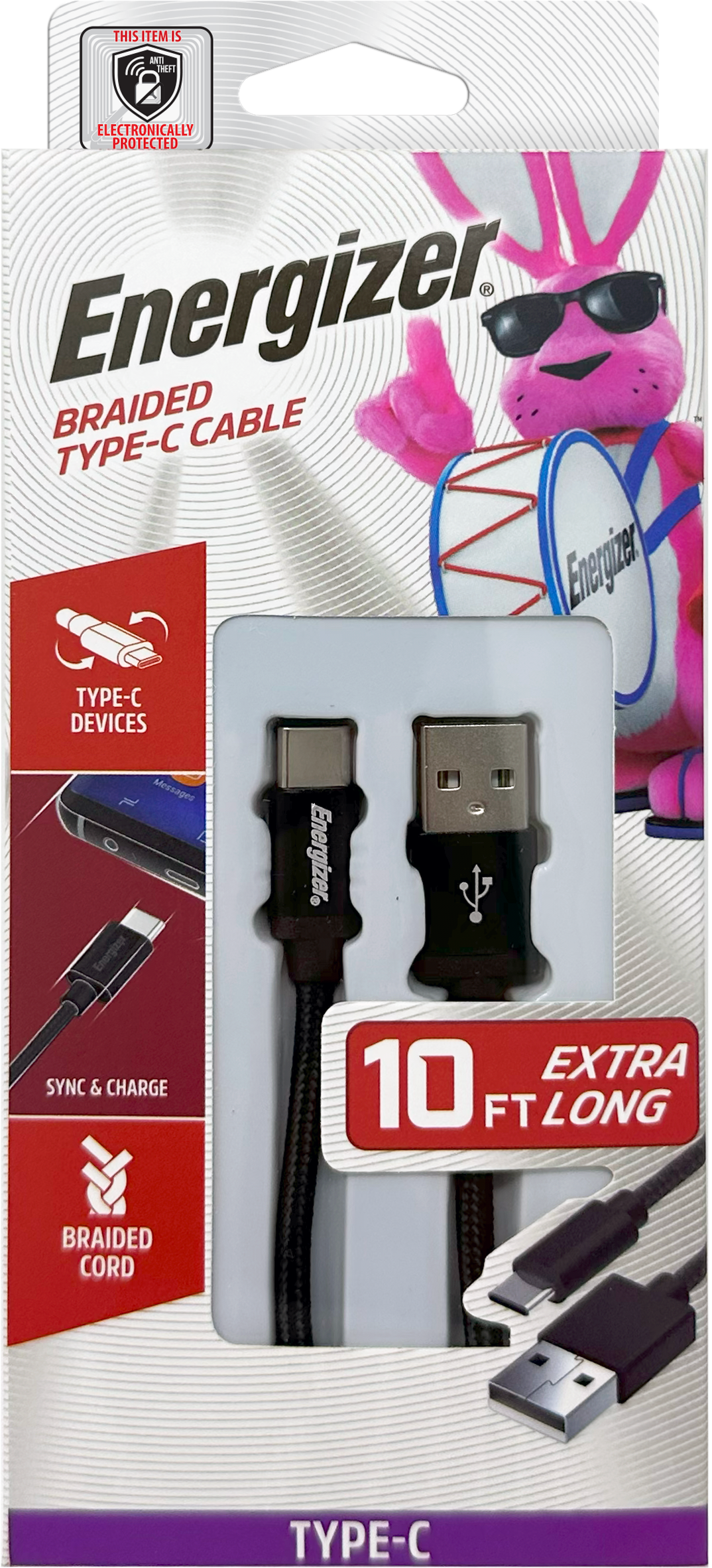 Charge and sync with freedom using the Energizer 10ft Braided Type-C Cable. Its durable braided design prevents fraying and breakage, while the extra-long 10ft length gives you flexibility to use your devices comfortably from anywhere in your home, office, or car. Compatible with all Type-C devices, this cable delivers reliable charging and data transfer every time.Specifications