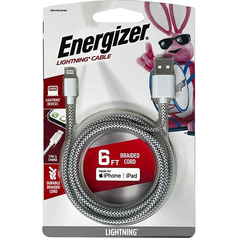 Energizer’s 6ft Braided Lightning USB Cable is more than up to the task. It’ll not only charge your Apple smartphone or tablet, but also let you transfer files and sync your device. Its 6 ft. length gives you flexible placement options and its braided jacket keeps the cable both protected and looking stylish.Specifications