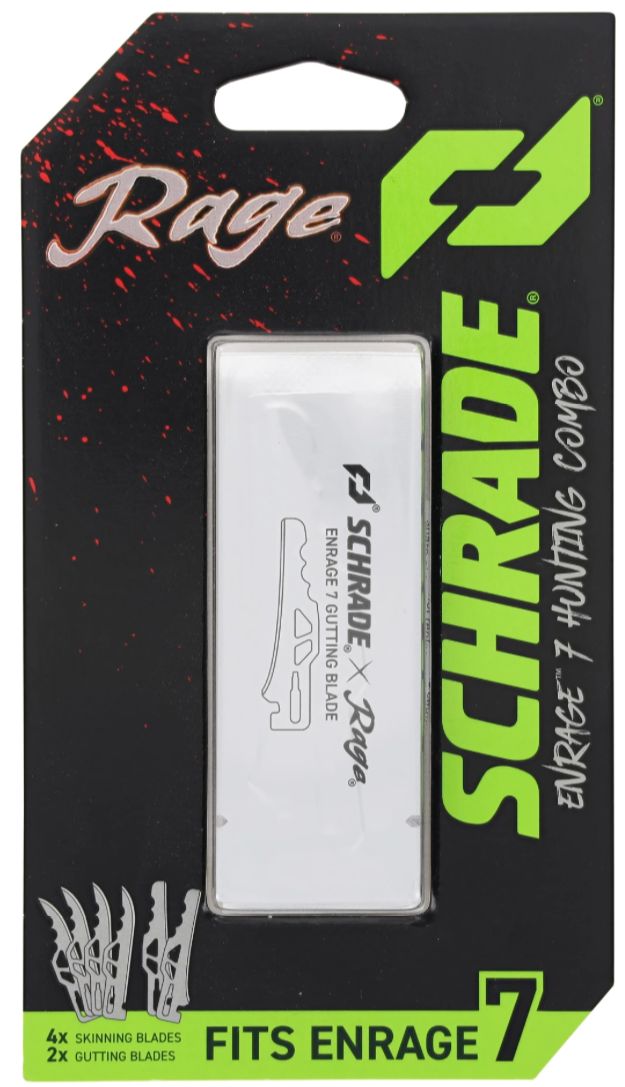 The Schrade Enrage Series provides the best functioning & most useful line of replaceable blade knives. Designed with Rage broadhead technology, the Enrage Replacement Blades are razor sharp. Whether you're breaking down your trophy or want to wield an extremely sharp EDC blade, the Schrade Enrage Series has an option for you.Specifications