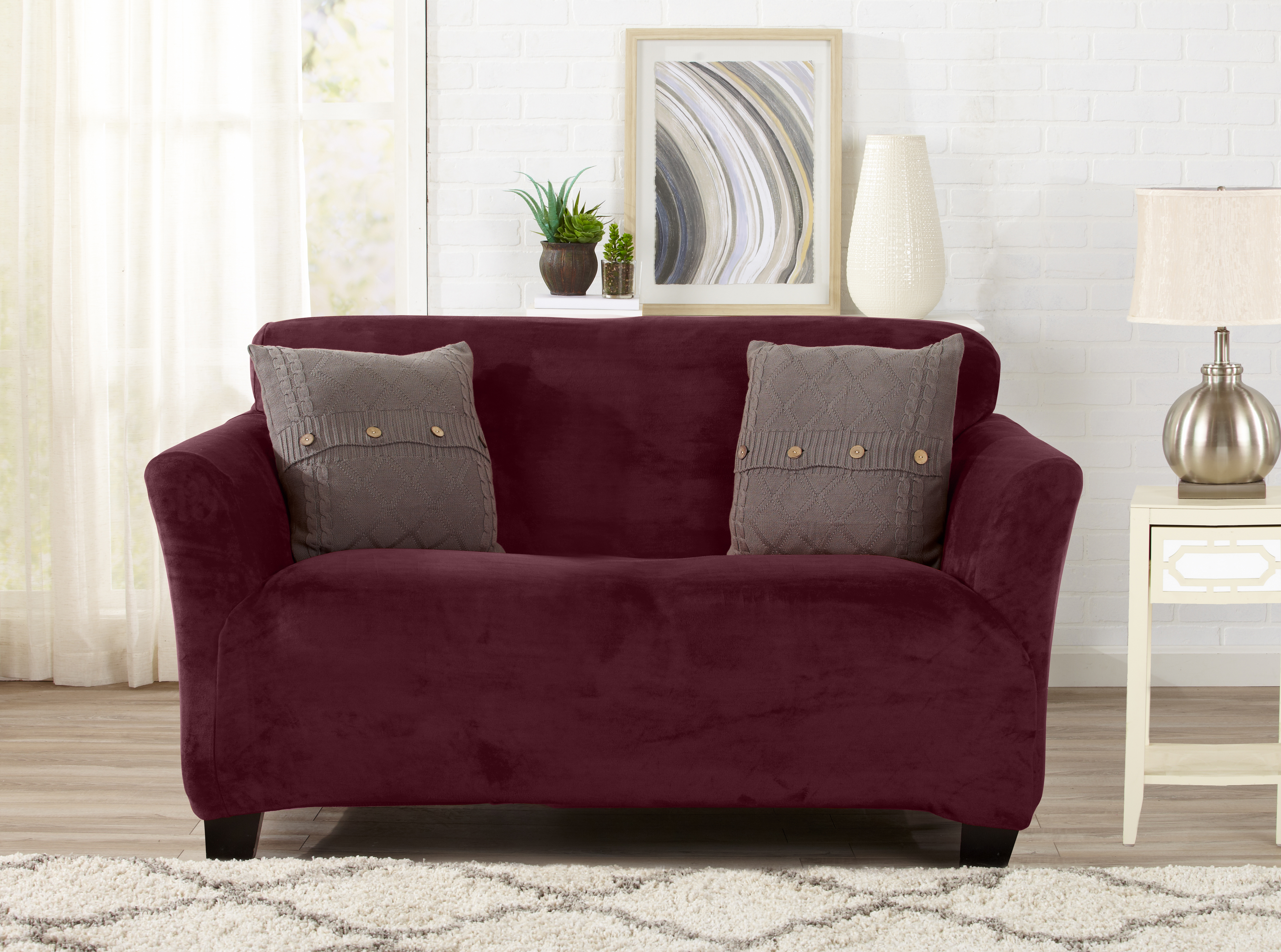 COLOR CHOICE NOT GUARANTEED FOR ONLINE ORDERS Solid Color Velvet Plush Stretch Slip Covers protects furniture from spills and stains. Great for families with petsSpecifications