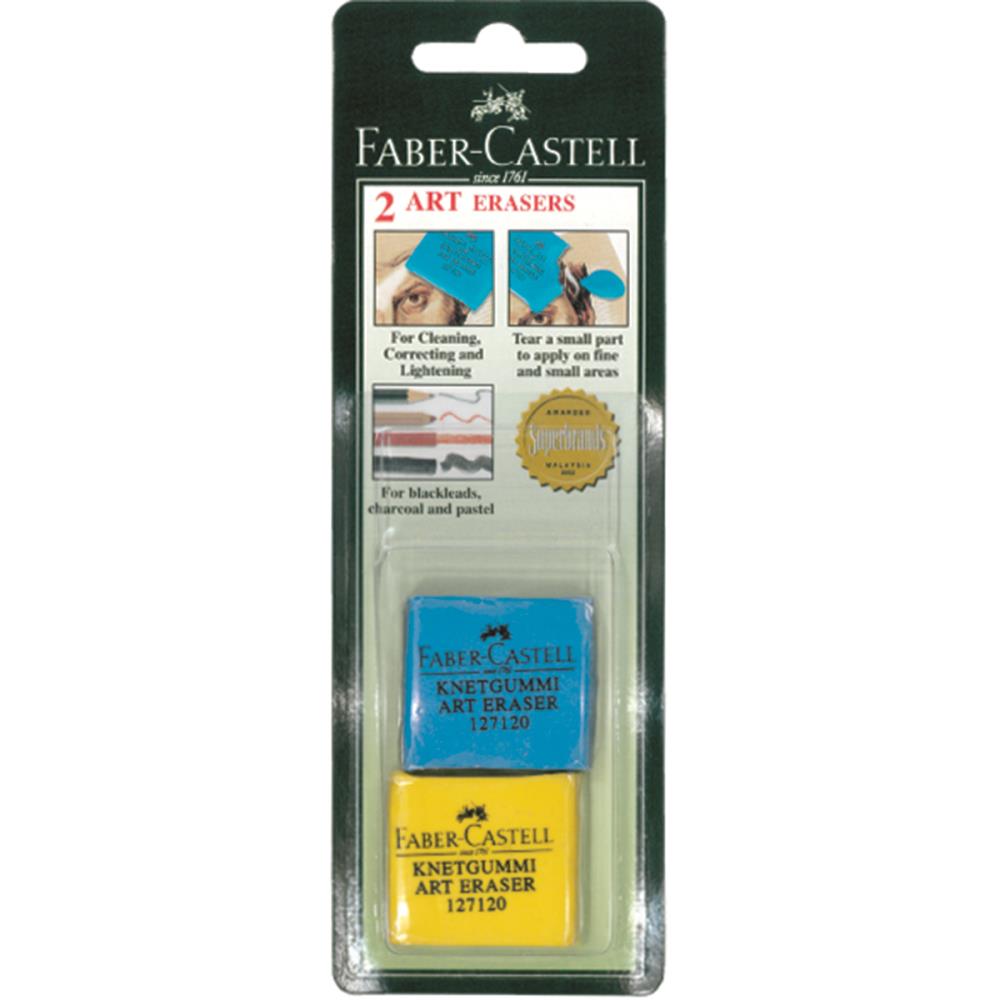 Faber Castel-Colored Kneaded Art Erasers Blister Carded. Erasers for correcting, lifting and highlighting charcoal, pastel and pencil works. Erase cleanly without leaving residue behind. Tear a small part to apply on fine and small areas. This package contains two color kneaded art erasersSpecifications