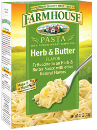 Farmhouse Pasta and Sauce side dishes, made with 100% durum wheat semolina, are delicious, quick and easy additions to any meal. With six varieties to choose from, including Fettuccine Alfredo Pasta and our new Angel Hair Butter and Parmesan Pasta, Farmhouse Pasta and Sauce side dishes always create the perfect complement to any main course.Specifications