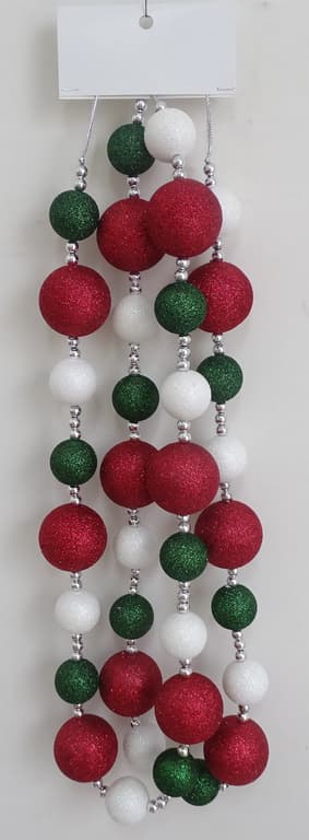 Designed with classic colors, the Red, Green & White 6 ft long Christmas tree garland is an ideal decoration for your Christmas tree, mantle, door, stairs, window, wall and fireplace.Specifications