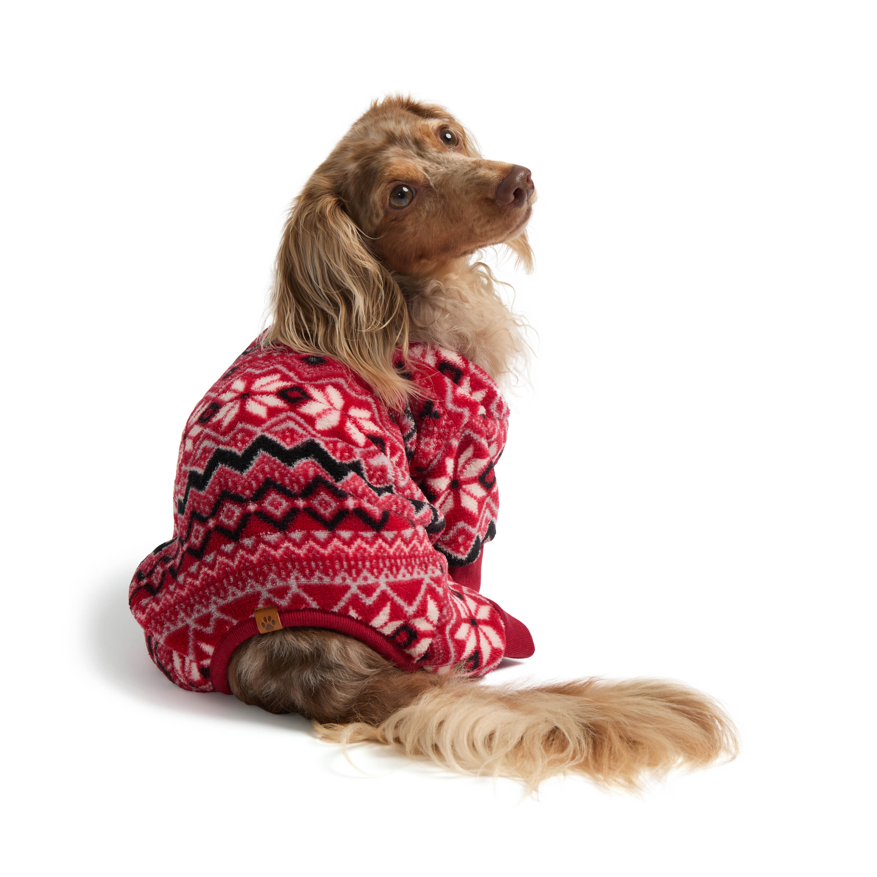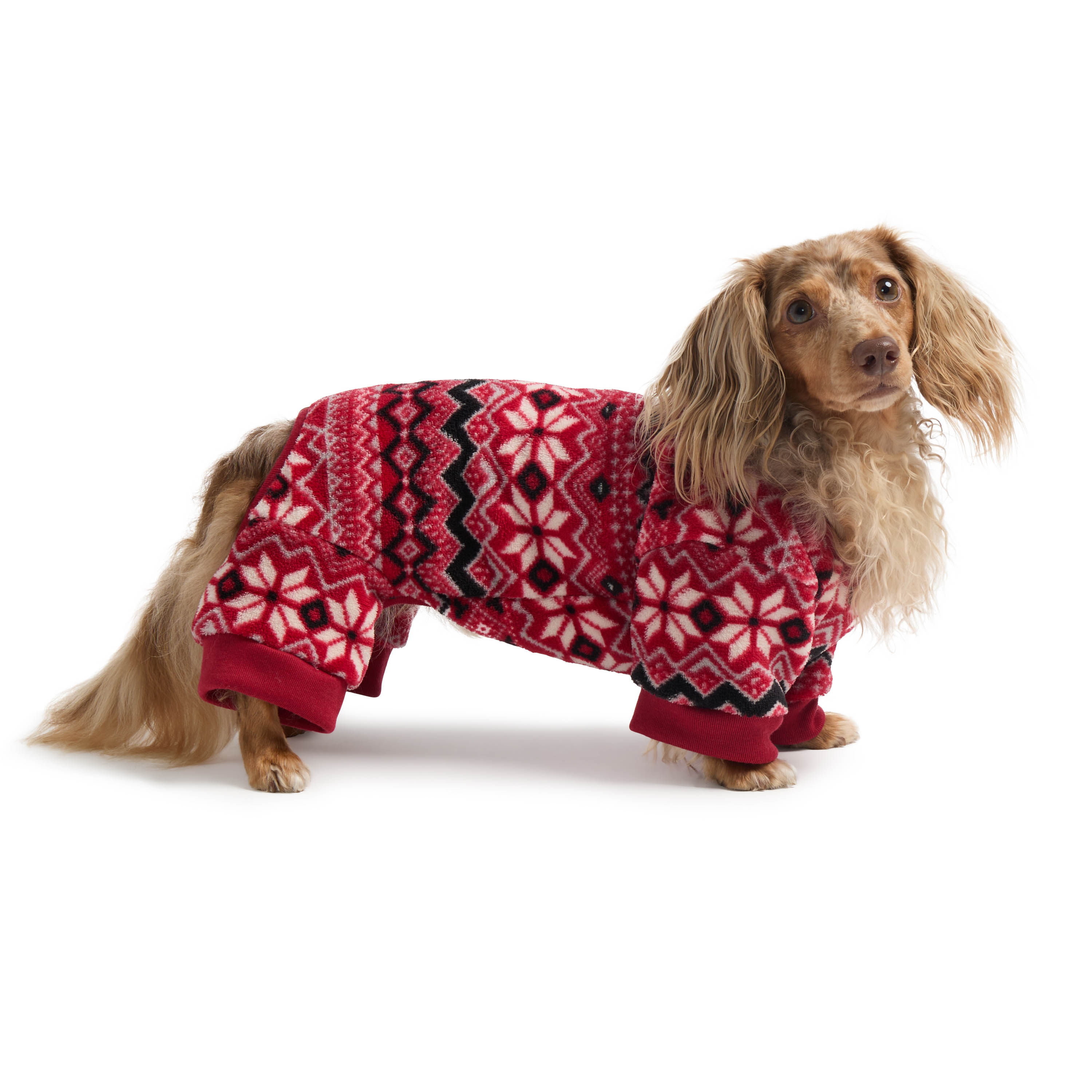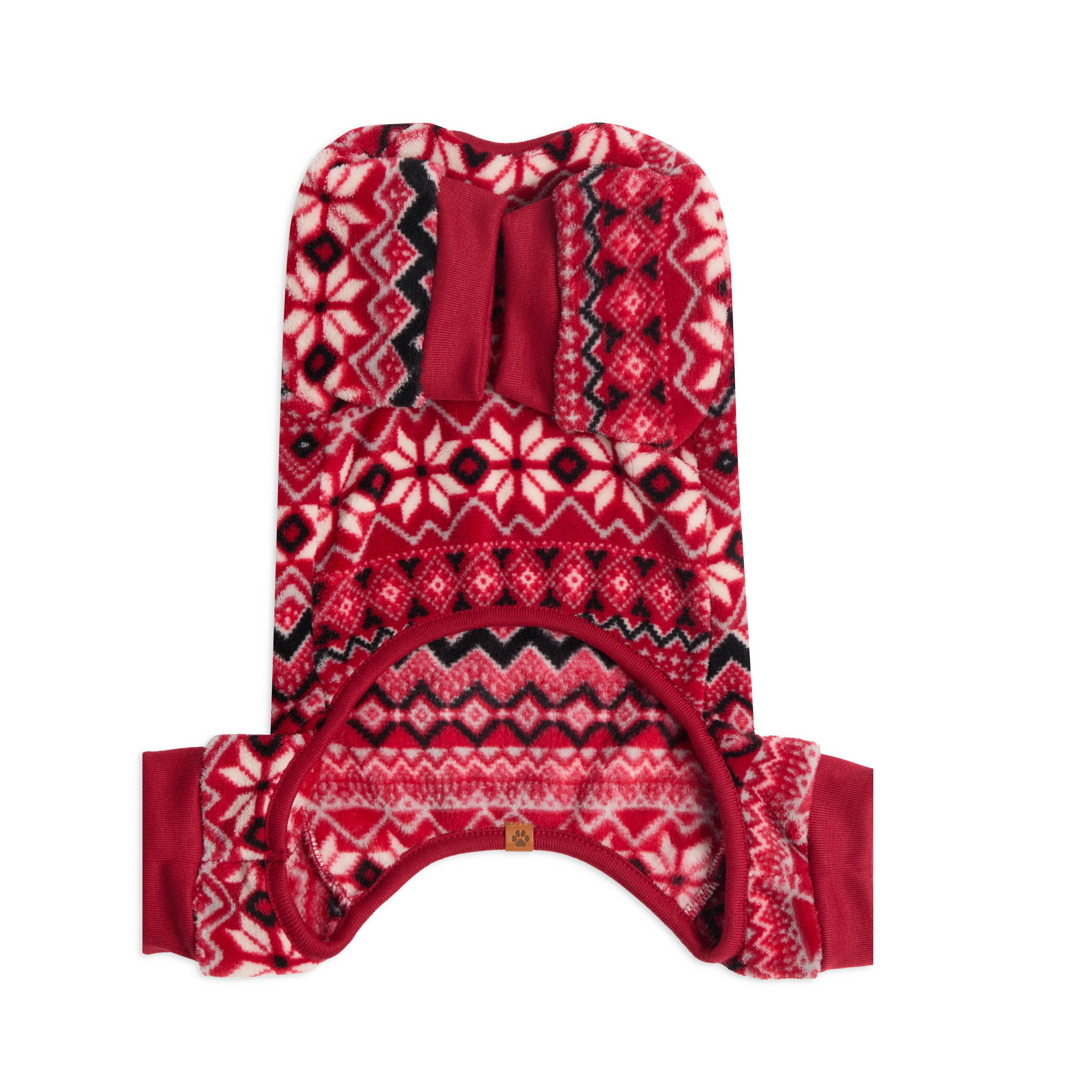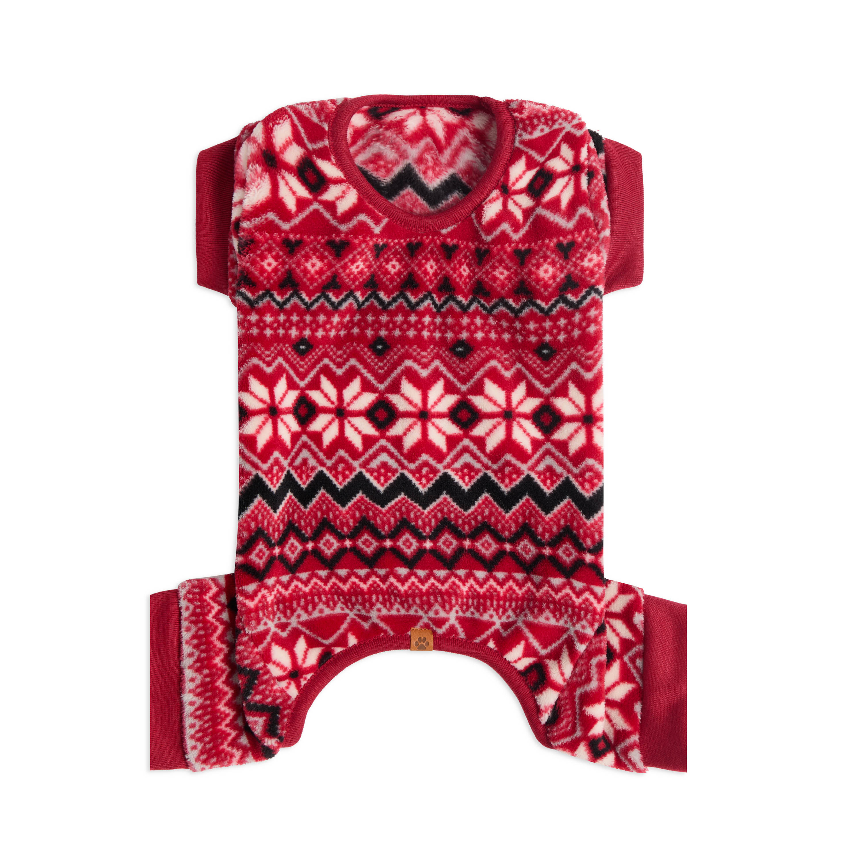 FESTIVE RED PLUSH FAIRISLE PRINT HOLIDAY ONESIE DOG PAJAMAS